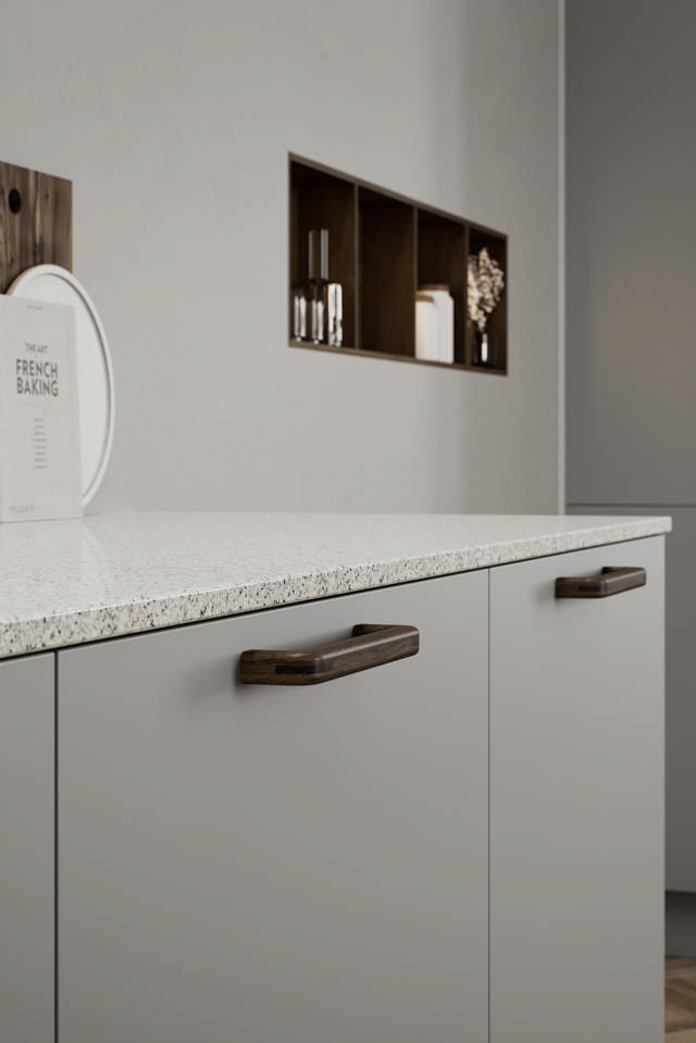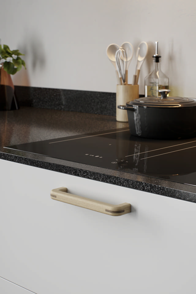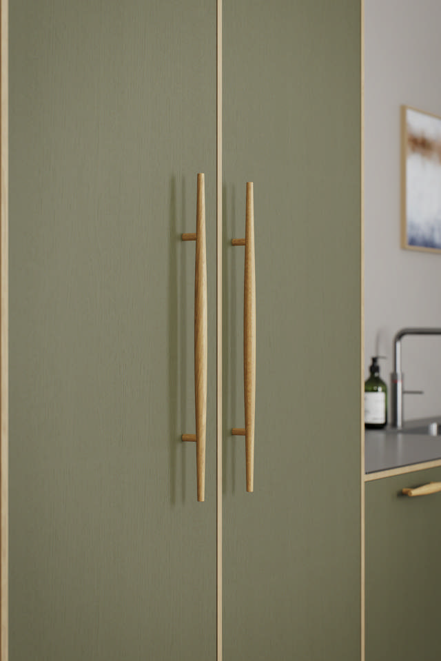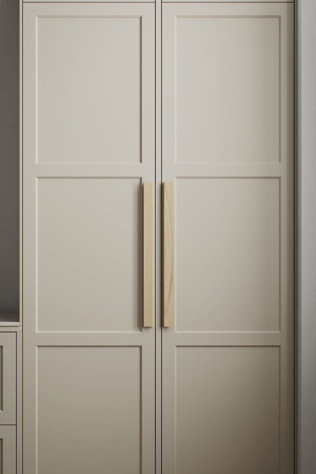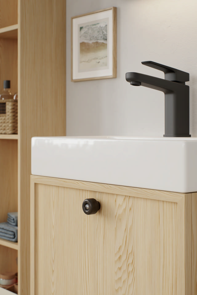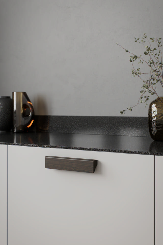 Baum explore l'équilibre entre tactilité et forme. Sa poignée légèrement incurvée tient confortablement dans la main, tandis que sa face avant plate permet à la texture naturelle du bois de s'exprimer pleinement. L'interaction entre une géométrie stricte et des formes douces confère à Baum une force tranquille, une présence architecturale empreinte d'humanité.
