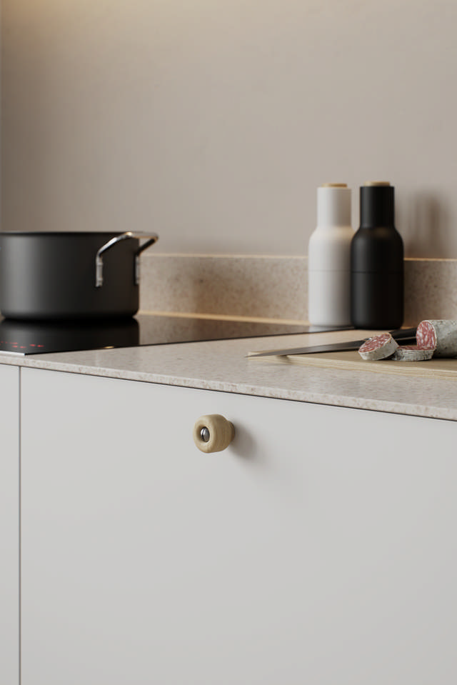 Row célèbre la simplicité, avec une forme pure et arrondie qui laisse le bois s'exprimer pleinement. Le disque massif semble flotter au-dessus de sa base, révélant un contraste subtil entre force et douceur. Row est un bouton polyvalent qui, grâce à son design simple et moderne, s'harmonise parfaitement avec bon nombre de nos poignées contemporaines telles que Magnum, Fortis et Baum.